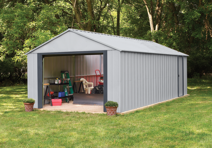 Просторные размеры: 400 см (ширина) x 242 см (высота) x 600 см (глубина). Гараж легко вмещает автомобили крупного размера, мотоциклы, велосипеды, садовую технику и другие крупногабаритные предметы.