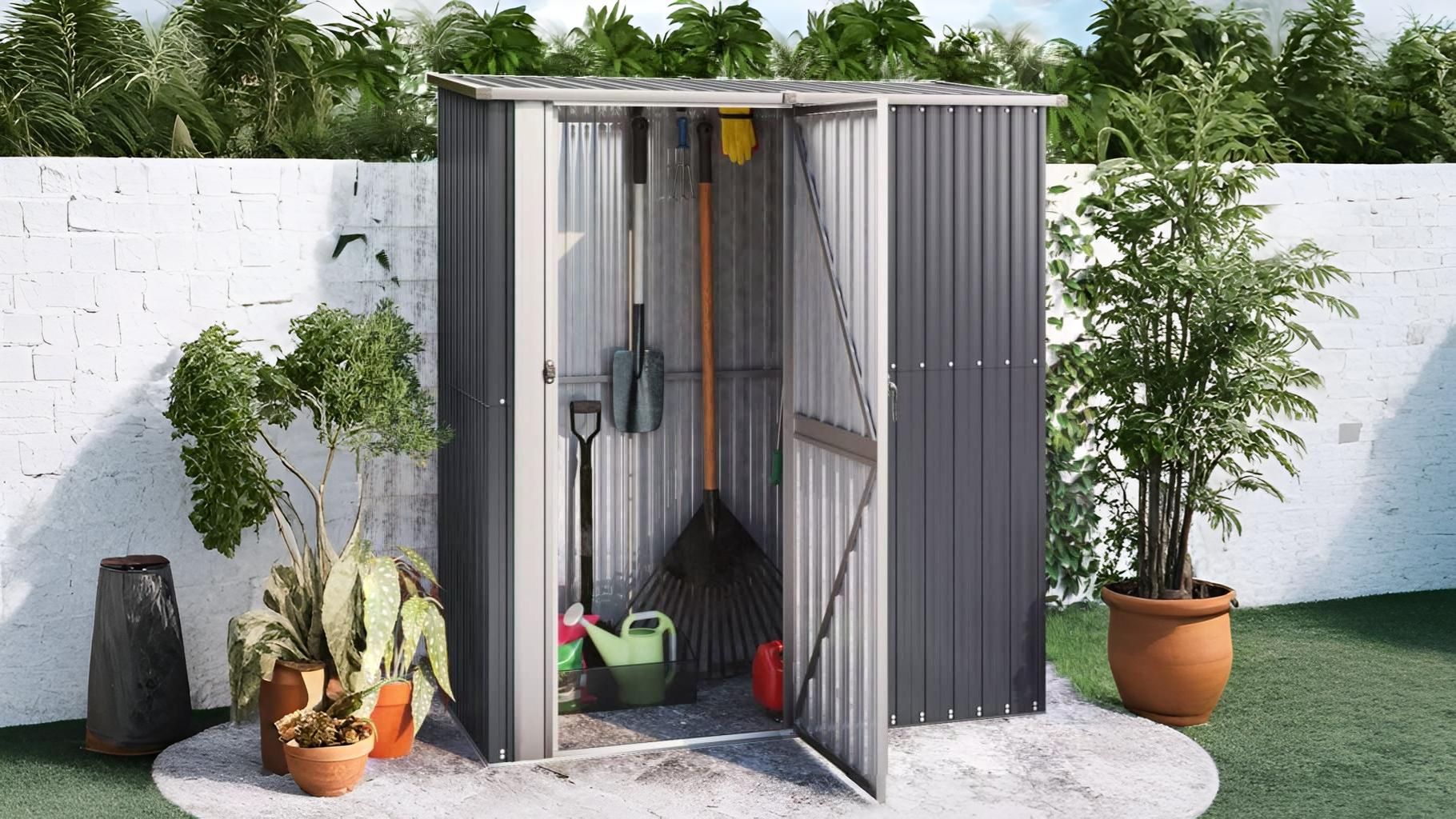 Идеально подходит для хранения садового инвентаря, инструментов и других принадлежностей.