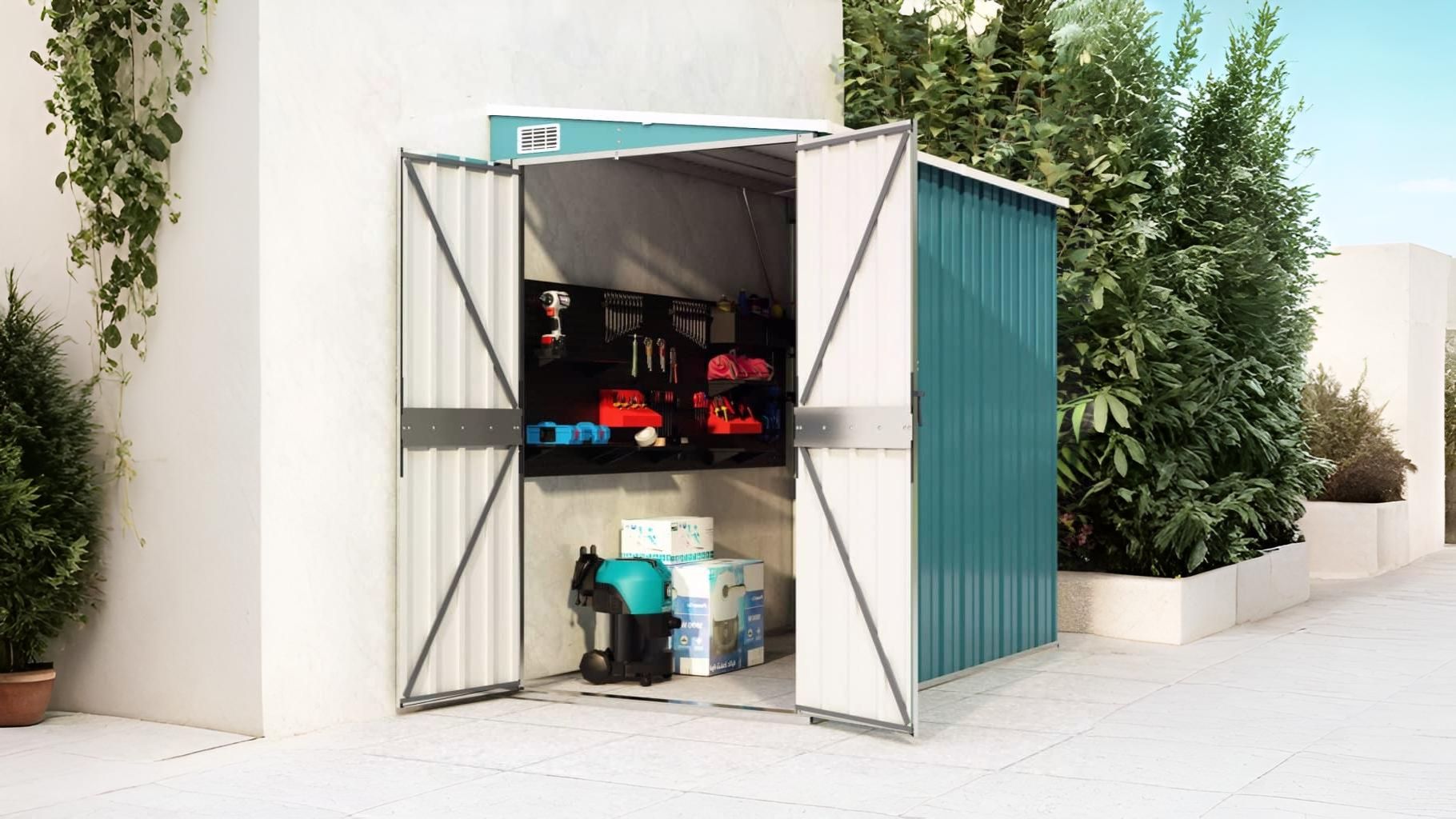 Идеально подходит для хранения садового инвентаря, инструментов и других принадлежностей.
