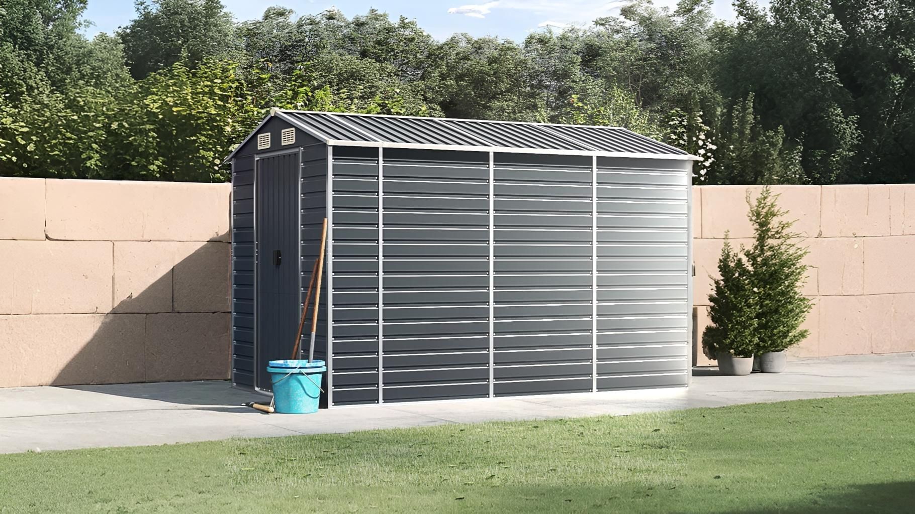Идеально подходит для хранения садового инвентаря, инструментов и других принадлежностей.